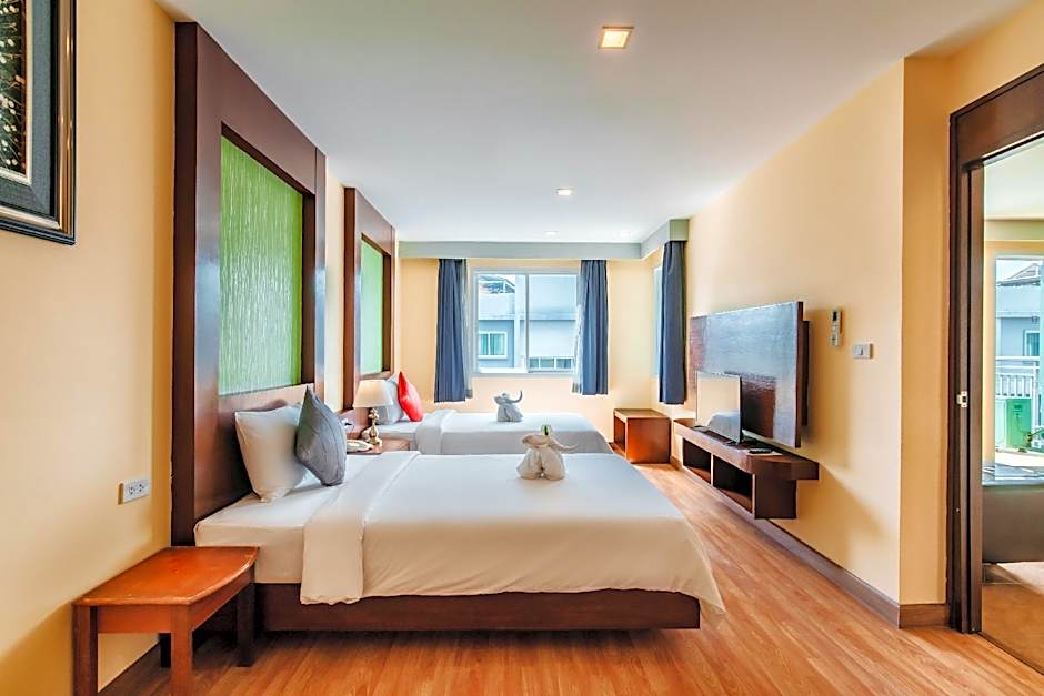This family room features a hot tub. The spacious family room features air conditioning, a tea and coffee maker, a balcony with city views as well as a private bathroom boasting a bath. The unit has 2 beds.